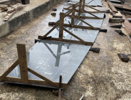 鋼板を熱する前に、曲面やネジレの大まかな形を整える工程です。荒曲げで板材の方向性やクセを確認し、後の熱間曲げで正確に形を整える準備を行います。